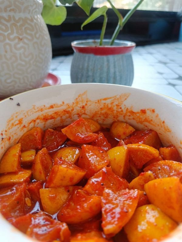 Pahadi Nimbu Achaar – Tangy Taste of the Hills!Experience the zesty delight of the mountains with Pahadi Nimbu Achaar, made from handpicked Himalayan lemons soaked in traditional spices and pure mustard oil. Each spoonful bursts with a tangy punch and aromatic warmth that instantly lifts any meal.Prepared through authentic Pahadi methods, our lemon pickle is sun-matured to perfection — no shortcuts, no preservatives. Add it to parathas, rice, or snacks, and bring a burst of mountain sunshine to your plate.Natural Ingredients | Genuine Pahadi Flavor | 100% Homemade Goodness