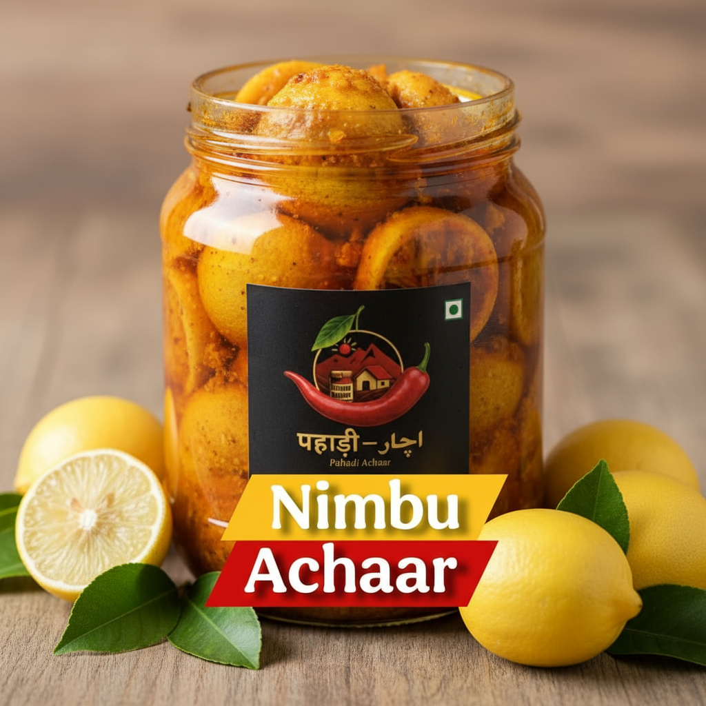Pahadi Nimbu Achaar – Tangy Taste of the Hills!Experience the zesty delight of the mountains with Pahadi Nimbu Achaar, made from handpicked Himalayan lemons soaked in traditional spices and pure mustard oil. Each spoonful bursts with a tangy punch and aromatic warmth that instantly lifts any meal.Prepared through authentic Pahadi methods, our lemon pickle is sun-matured to perfection — no shortcuts, no preservatives. Add it to parathas, rice, or snacks, and bring a burst of mountain sunshine to your plate.Natural Ingredients | Genuine Pahadi Flavor | 100% Homemade Goodness